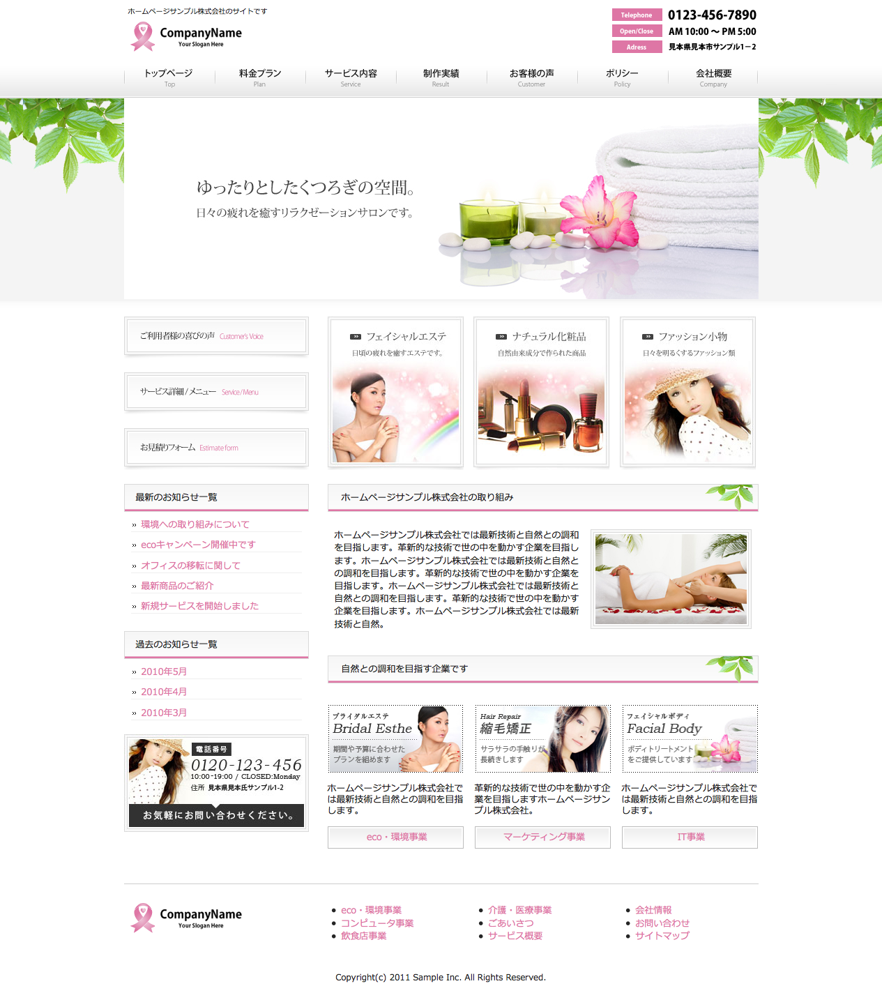 ナチュラルで清潔感のあるワードプレス(WordPress)テーマです。エステ・美容室・美容院・ネイルサロン・化粧品店など美容系のサイトに最適なデザインです。