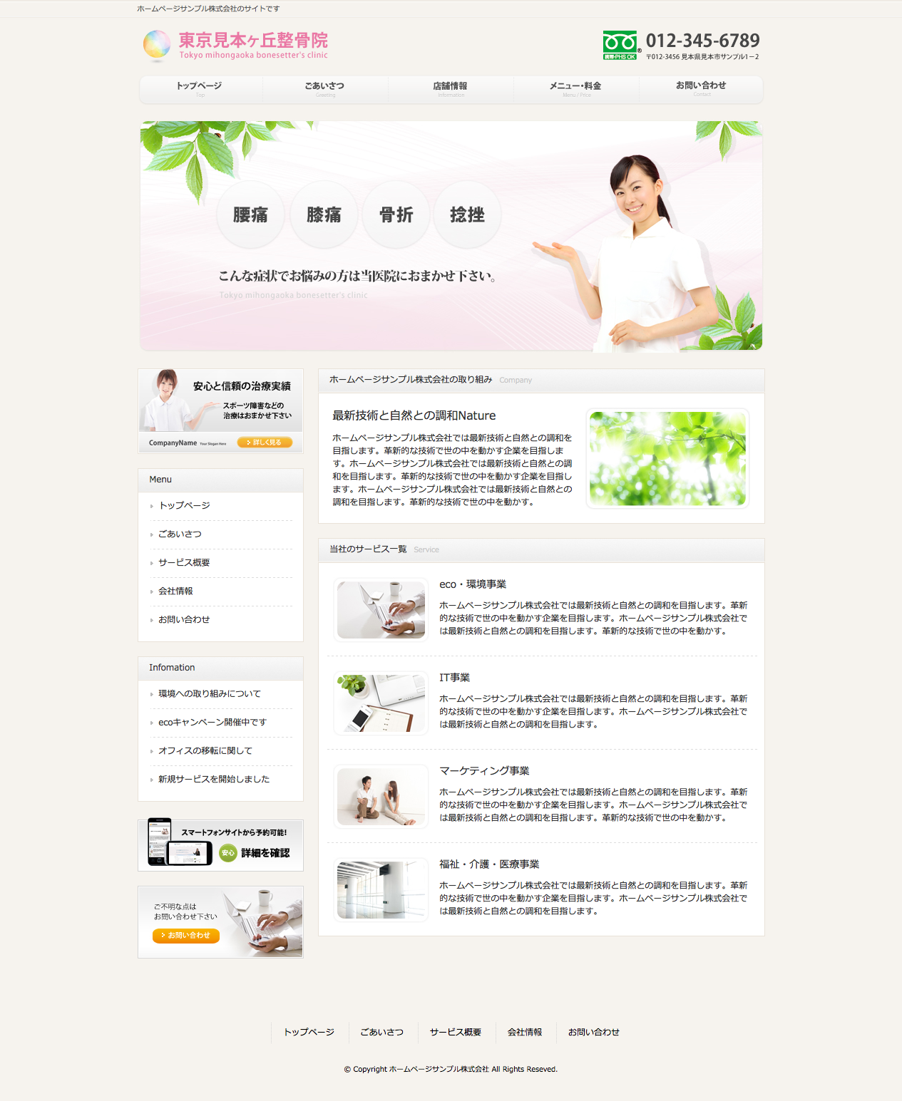 ナチュラルなデザインの整骨院・整体院・治療医向けのワードプレス(WordPress)テーマです。病院や歯科医院、歯医者などの医療系にも最適なデザインです。