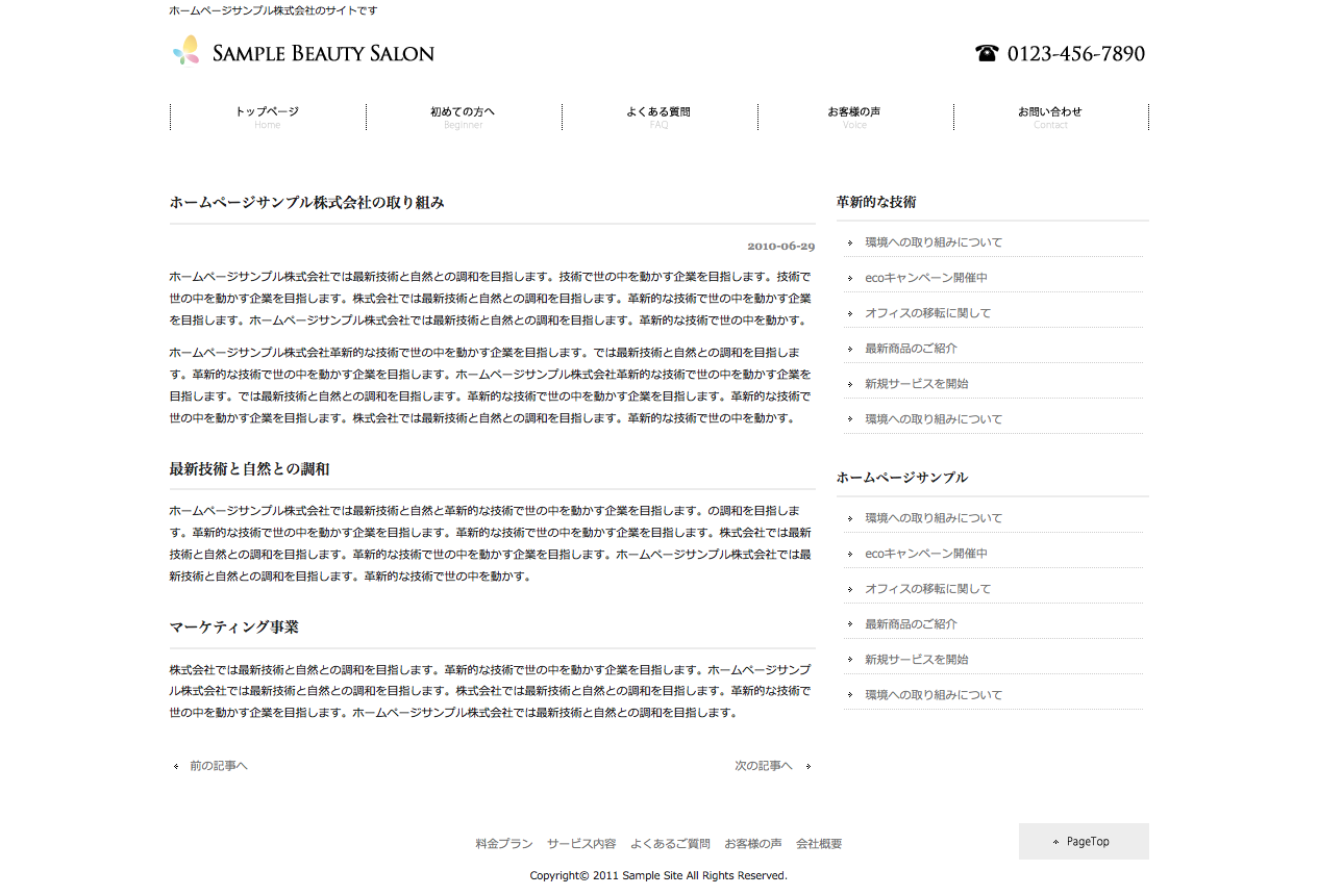 エステ・美容室などの美容向けのワードプレス(WordPress)テーマです。ネイルサロンや整体系にも最適なデザインです。