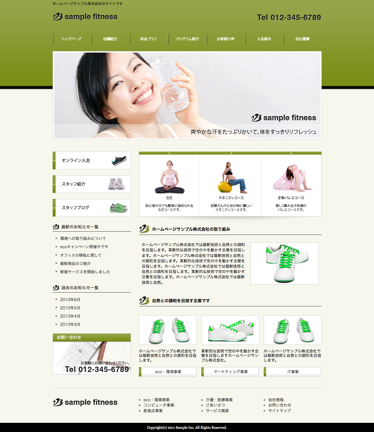 フレッシュな印象のワードプレス(WordPress)テーマです。スポート・ジム・フィットネス系に最適なデザインです。