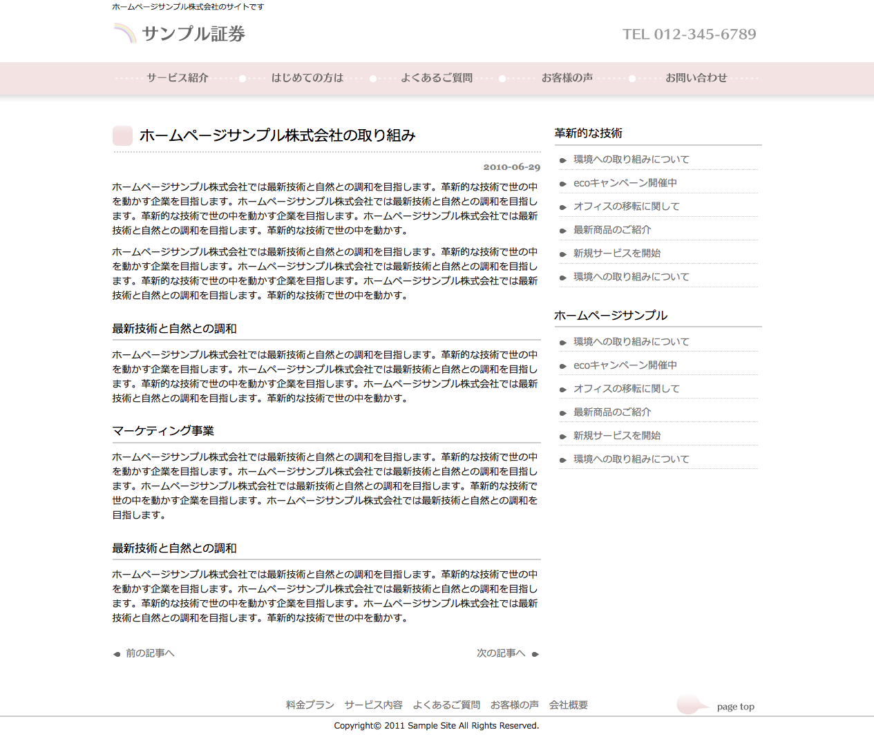 ワードプレス(WordPress)テーマ No.825[ソフトPINK]