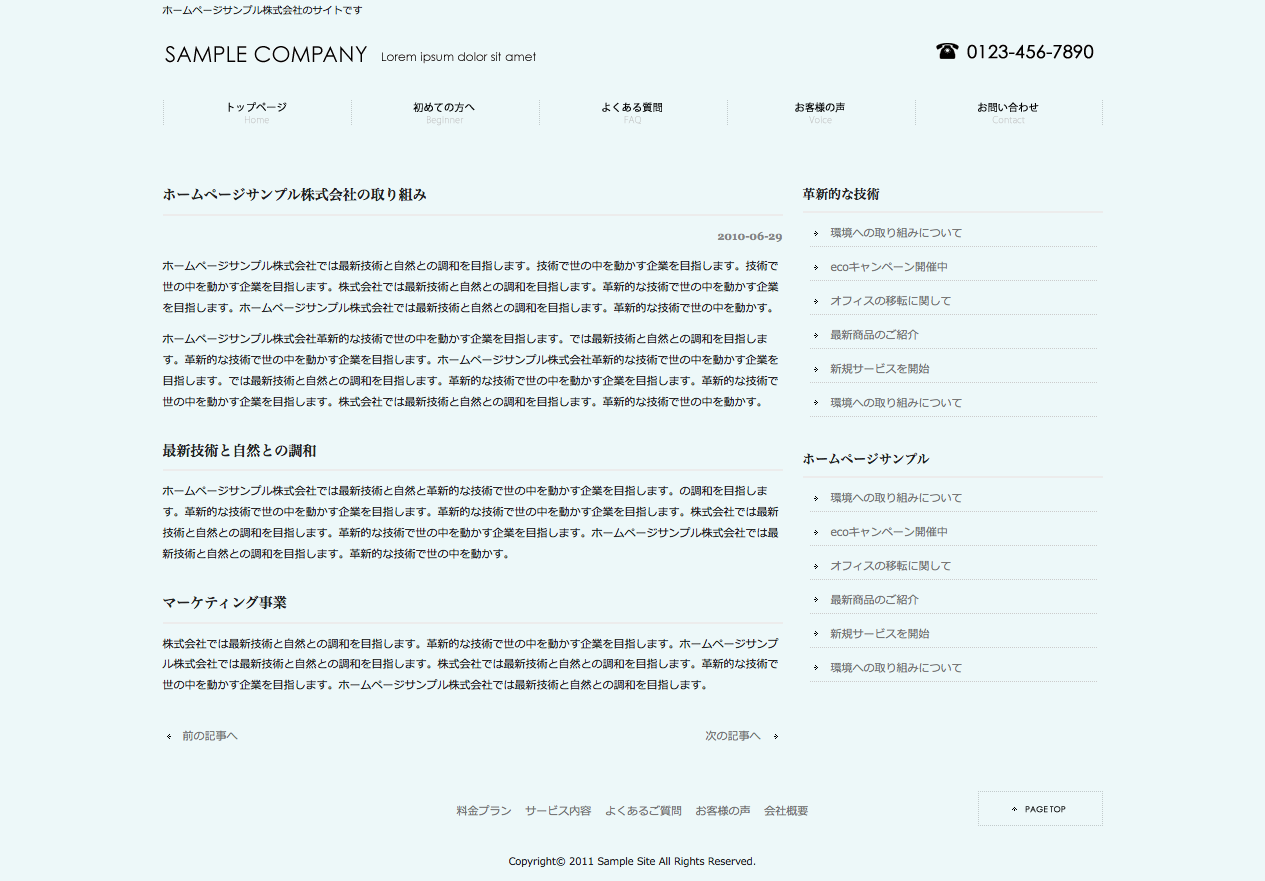 ワードプレス(WordPress)テーマ No.839[シンプルBLUE]